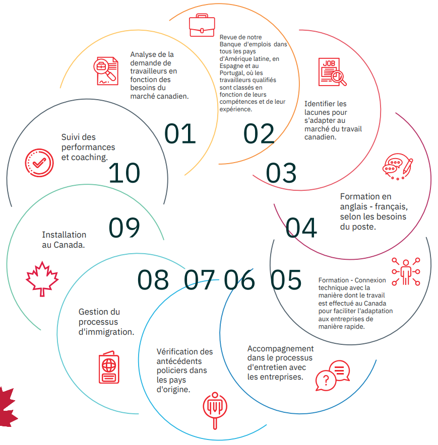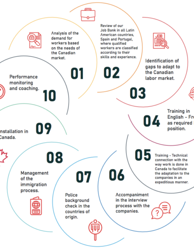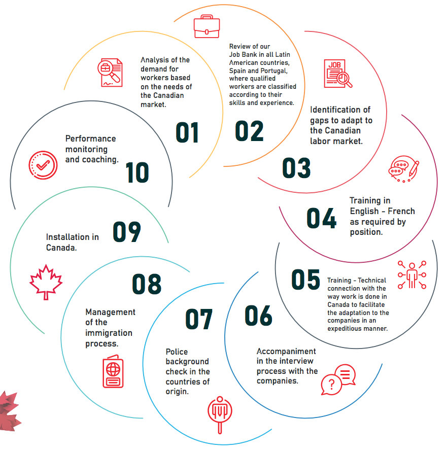 Somos una empresa canadiense incorporada, que ofrece un servicio integral a las compañías canadienses en los sectores de Manufactura, Construcción, Logística, Salud, Servicios Financieros, Servicio al Cliente, Transporte y
